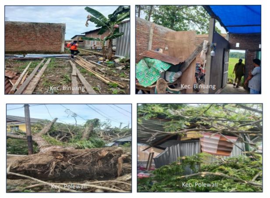 Berdasarkan laporan pusdalops bpbd polman Peristiwa tersebut menyebabkan sejumlah rumah warga mengalami kerusakan, serta pohon tumbang di beberapa titik di sekitar pesisir pantai. BPBD Sulbar menilai perlu dilakukan koordinatif untuk memastikan penanganan berjalan optimal.